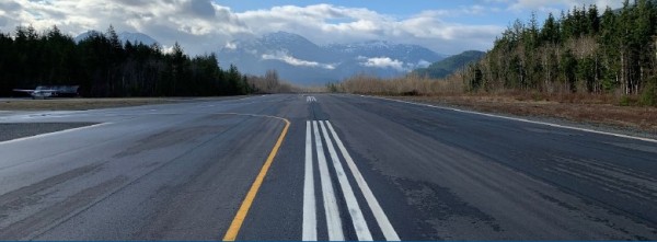Runway 15-33 is a 2,400 ft. x 75 ft. (732 m x 23 m) paved facility that is used for fixed-wing and rotary- wing arrivals and departures. Runway 15-33 was rehabilitated in 2021 through funding provided by the British Columbia Air Access Program and was observed to be in very good condition by HM Aero in March 2022. Based on TP312 5th Edition, the width of Runway 15-33 permits operations by fixed-wing aircraft with outer main gear wheel spans of up to 6.0 m. This is adequate for the full range of single and twin-engine aircraft that typically operate at the Airport.